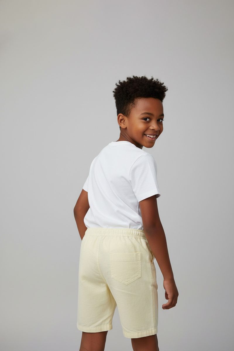 moda infantil Caedu.Versátil, esta bermuda é perfeita para diversas ocasiões. Ideal para brincadeiras no parque, passeios em família, festinhas de aniversário ou para o conforto do dia a dia. Uma peça chave para o guarda-roupa infantil, garantindo estilo e liberdade.Combine a bermuda amarela com camisetas básicas brancas ou estampadas para um look casual e divertido. Para os pés, tênis ou sandálias são ótimas opções. Em dias mais frescos, uma jaqueta jeans ou um casaco leve complementam o visual, criando um estilo despojado e cheio de personalidade para seu pequeno. Explore a