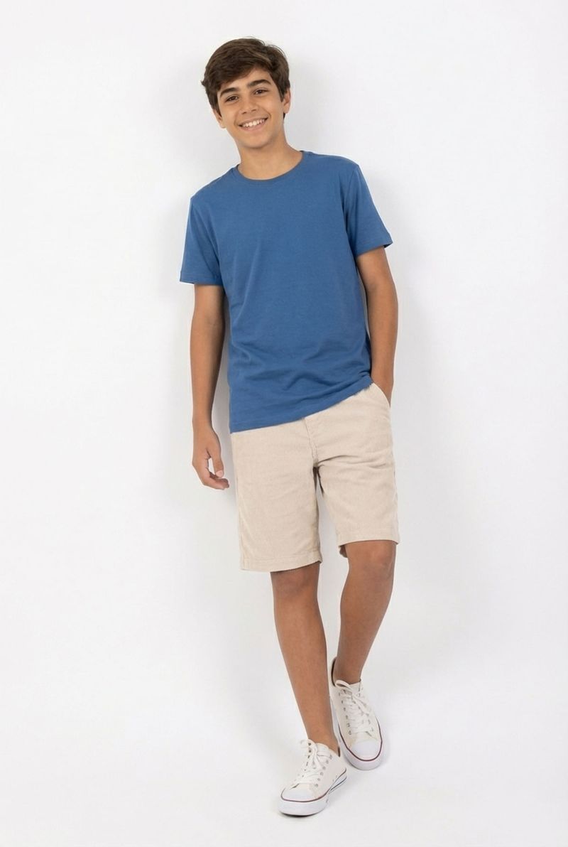 Experimente o conforto e estilo com o Shorts Juvenil Sarja Eco da Caedu. Confeccionado em sarja de algodão e elastano, oferece toque suave e ajuste ideal. Seu design listrado em bege claro é perfeito para a moda casual, garantindo liberdade para o dia a dia.