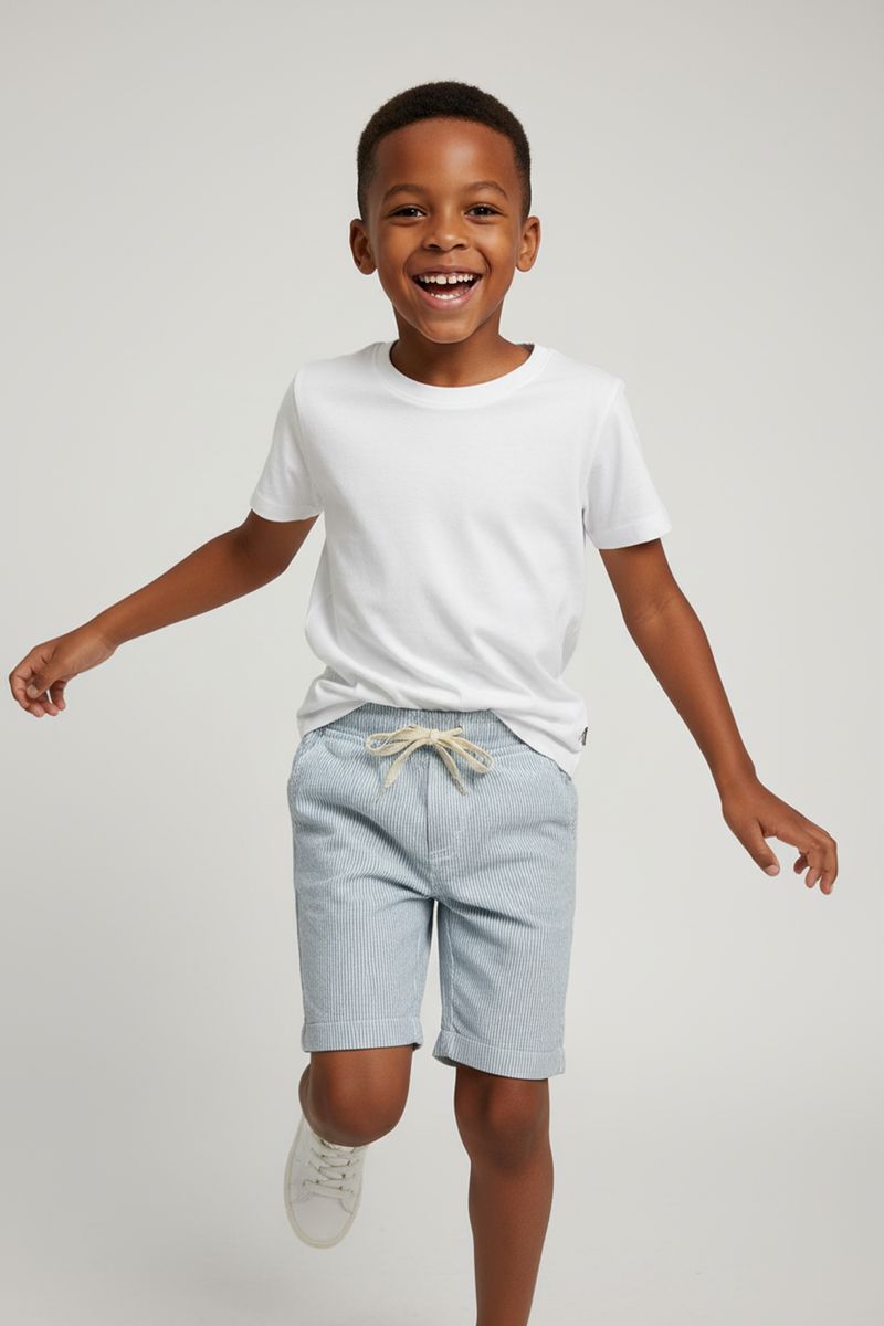 Bermuda sarja eco 4/8 nos listrado v azu azul claro