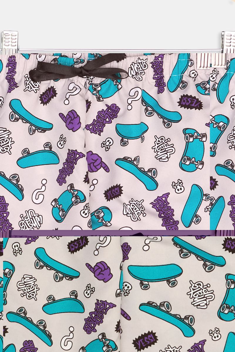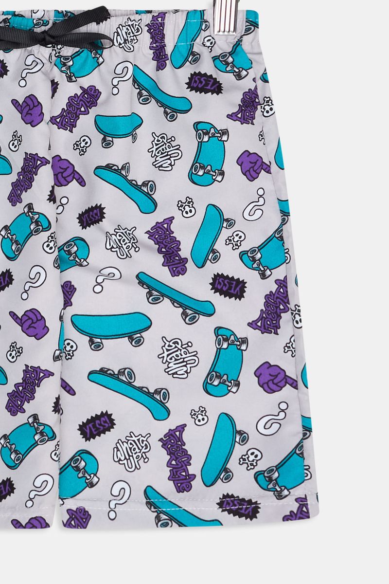 A Bermuda Infantil Caedu de tactel é a escolha perfeita para os jovens que buscam conforto e estilo. Com uma estampa vibrante de skateboards e grafites, esta roupa moderna possui cós elástico para ajuste ideal, garantindo liberdade em todas as aventuras. Ideal para um look despojado e cheio de personalidade da moda Caedu.