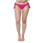 Biquíni calcinha laço pink com textura. A peça básica é um clássico do guarda-roupas feminino. Com laterais médias e amarração, o modelo é prático, confortável e passível de diversas combinações.