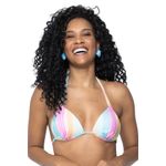 Top Biquíni com Bojo Estampa Listras Azul Rosa e Laranja