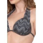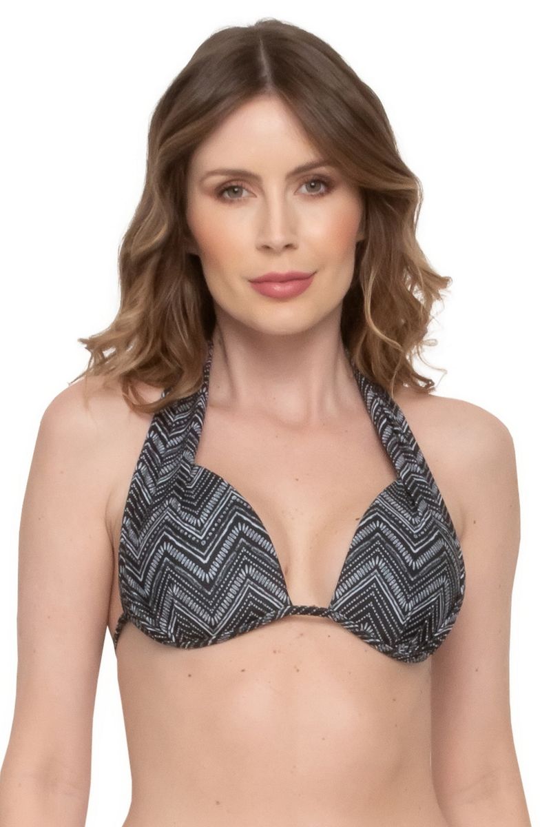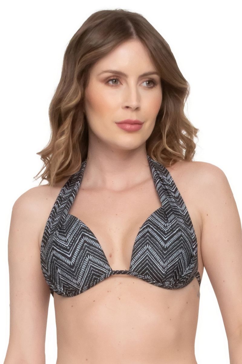 Top Biquíni Triângulo com Bojo e estampa Chevron Preto