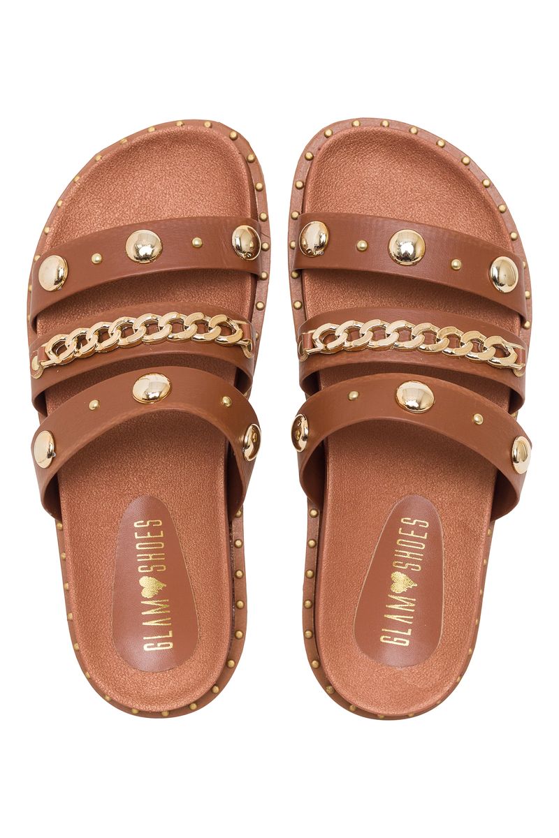 Elegância e conforto! A Birken caramelo com corrente é ideal para o dia a dia.