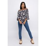 Blusa Ciganinha Feminina com Estampa Floral Azul Escuro