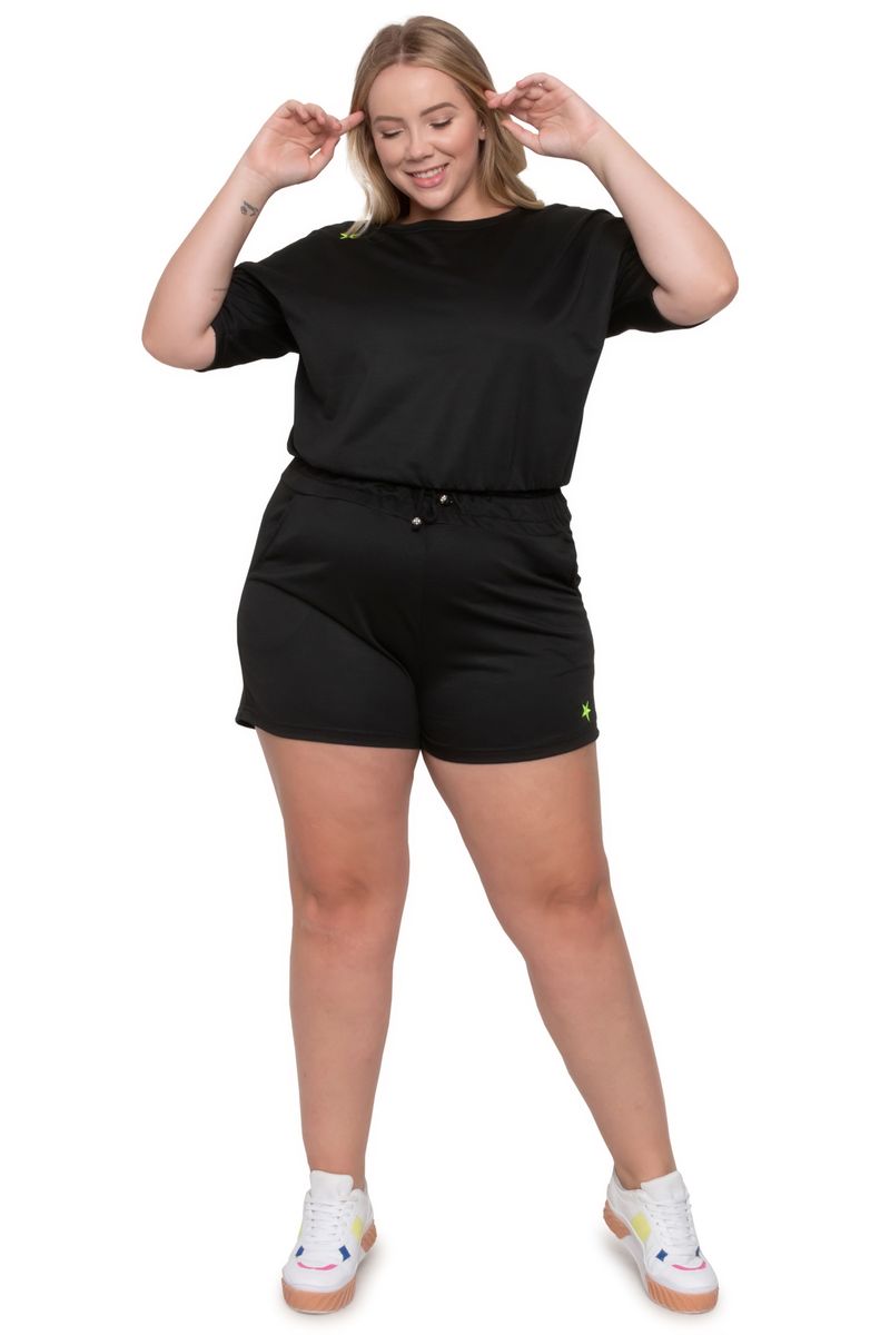 Blusa cropped feminina lisa, modelo plus size, confeecionada em French Terry. Possui manga curta, elástico na base e decote redondo.