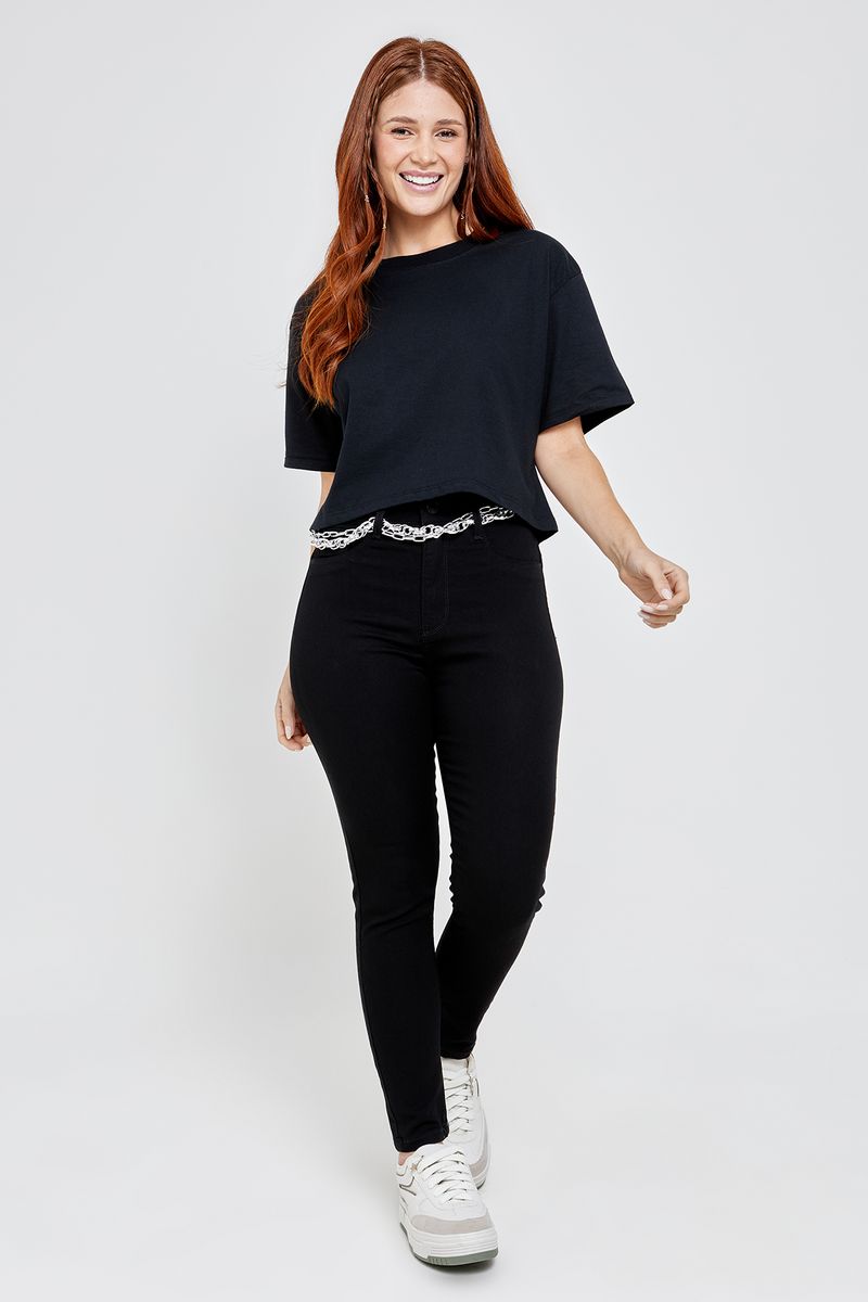 Desperte seu estilo com a Blusa Cropped Manga Curta Preta Caedu. Confeccionada em 100% algodão e meia malha, oferece conforto e caimento perfeito. Ideal para um look moderno e versátil, esta peça é um item essencial para o seu guarda-roupa de moda feminina.