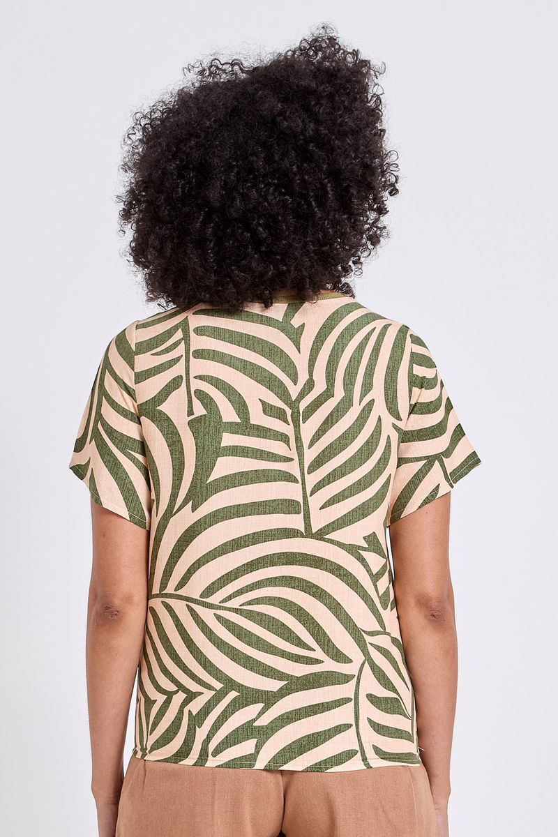 Desfrute do conforto e estilo com a Blusa Feminina Caedu de estampa tropical. Perfeita para um visual casual e moderno, esta blusa em poliéster com manga curta e cores vibrantes de verde e bege é a escolha ideal para realçar sua moda e personalidade. Uma roupa versátil para o dia a dia.