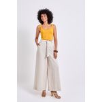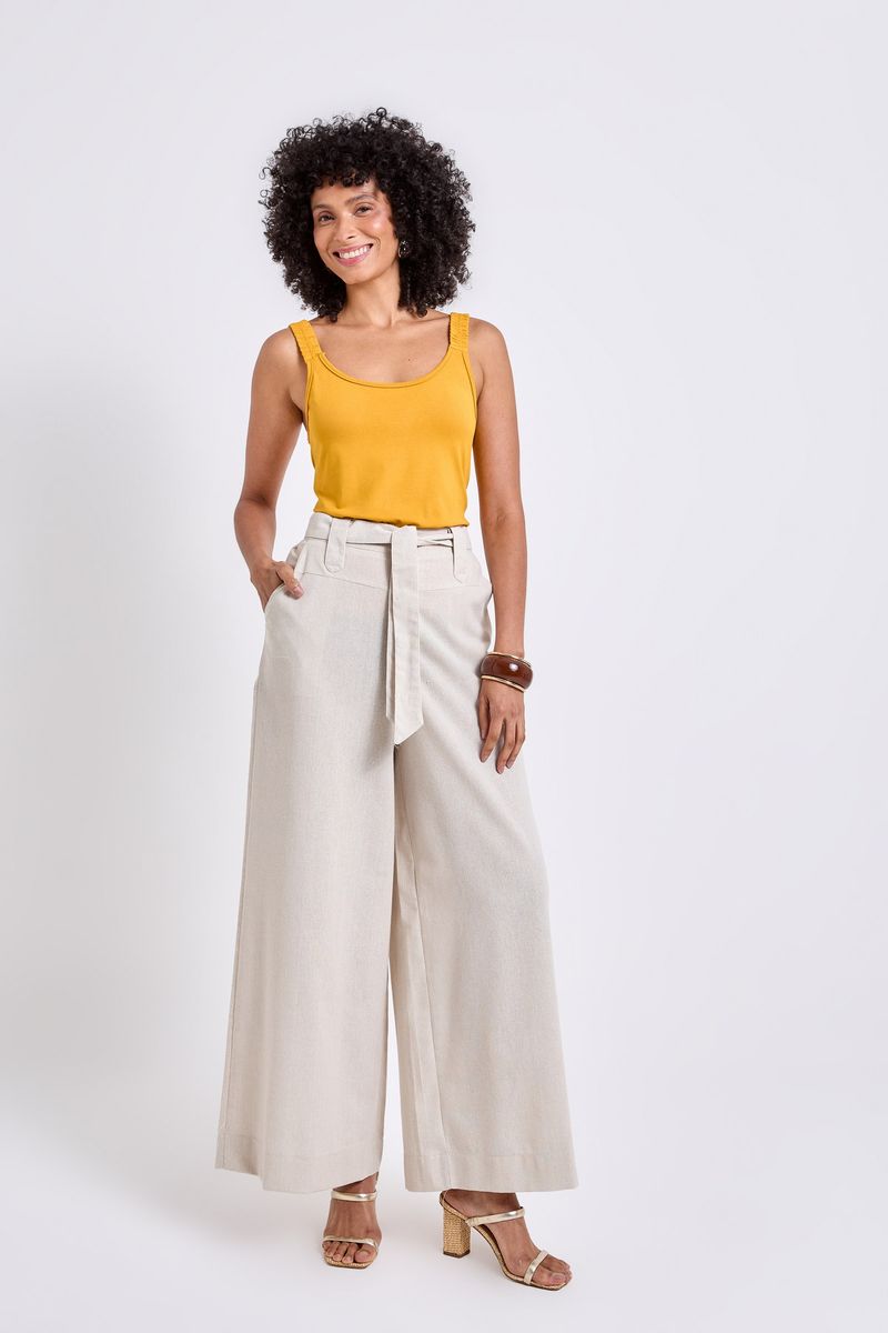 Combine sua regata mostarda com uma calça jeans de cintura alta para um look casual chic, ou com uma saia midi para um toque mais sofisticado. Para os pés, sandálias rasteiras ou tênis branco complementam o visual. Adicione acessórios como um cinto ou brincos discretos para finalizar com estilo e bom gosto.