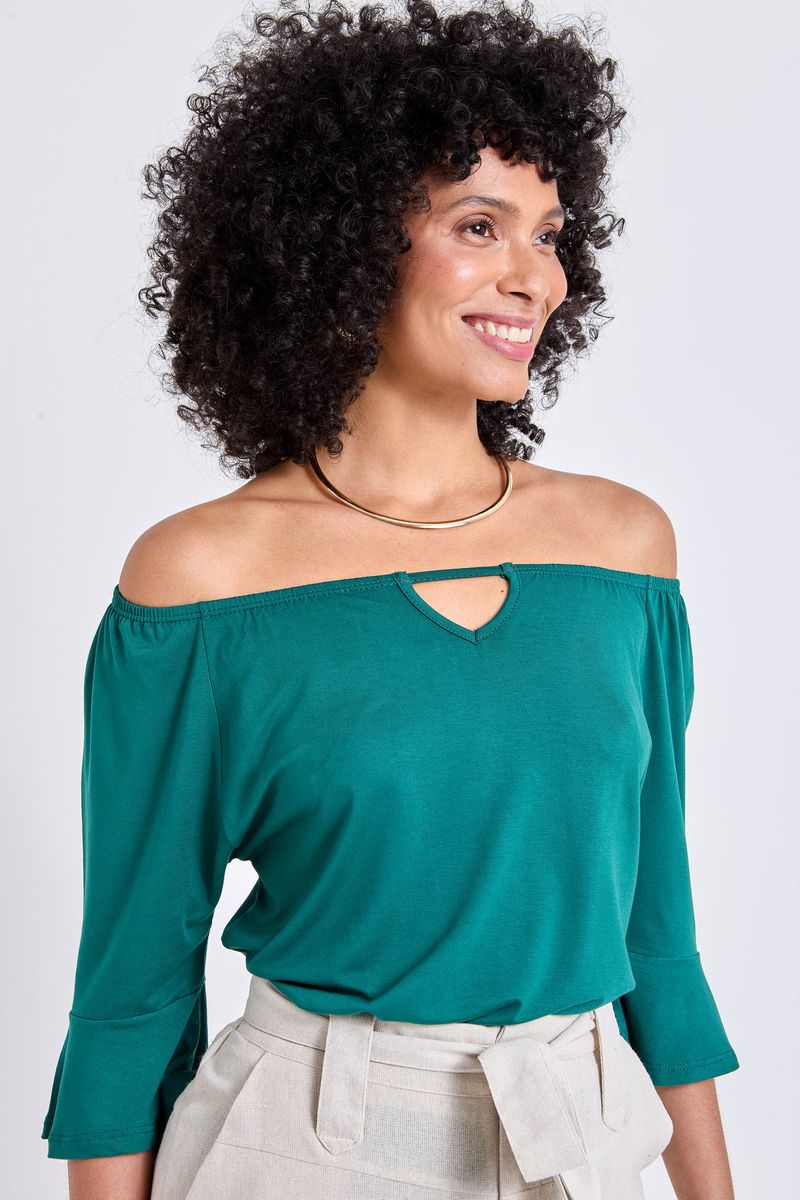 Sinta a moda e o conforto da Blusa Ciganinha Feminina Caedu. Em um elegante verde médio, esta peça destaca-se pelo decote ombro a ombro com detalhe vazado e mangas longas, perfeita para um visual inspirador. Confeccionada em meia malha, oferece leveza e estilo para seus momentos.