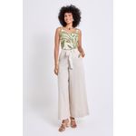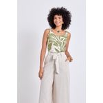 Para um look completo e inspirador, combine sua Blusa Regata Estampa Folhagem com uma calça de corte largo e cintura alta em tons neutros, como bege ou off-white, para um visual elegante e confortável. Adicione sandálias rasteirinhas ou anabelas e acessórios discretos para realçar a estampa. Uma jaqueta leve pode complementar o estilo em ambientes mais frescos.