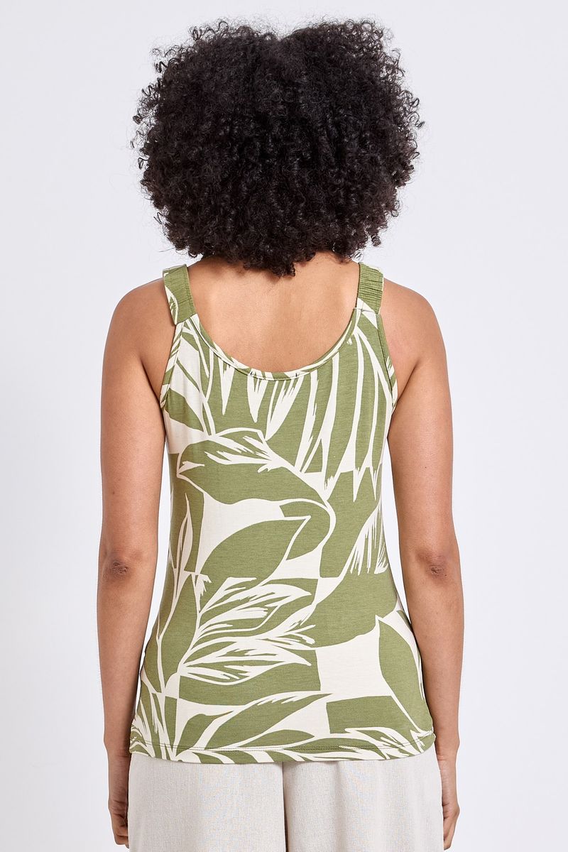 Desperte sua essência tropical com a Blusa Regata Feminina Estampa Folhagem Tropical Verde Caedu. Confeccionada em viscolycra, esta peça estampada com folhagens em tons de verde oliva e creme oferece conforto e estilo. Perfeita para um visual vibrante e cheio de personalidade, ideal para a mulher moderna que busca roupas e bem-estar.
