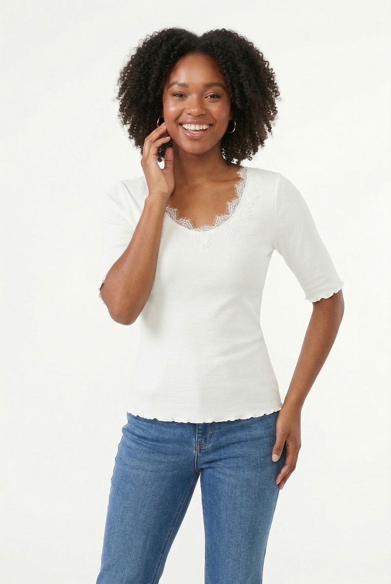 VestuárioFemininoBlusas e CamisetasBlusa fem cas fcal471 m/c deco renda off off white