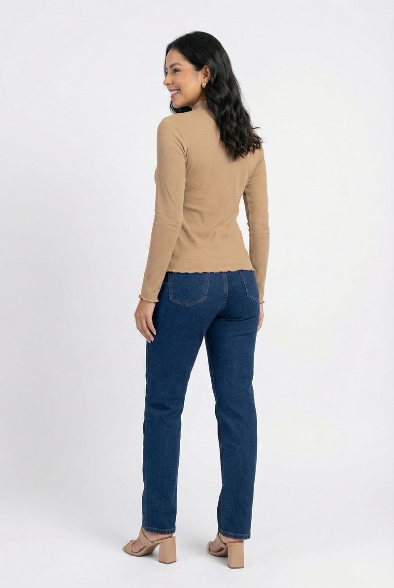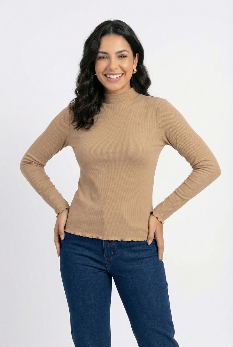 Blusa fem cas m/l ribana gola alta bege bege claro
