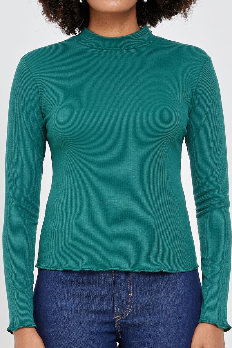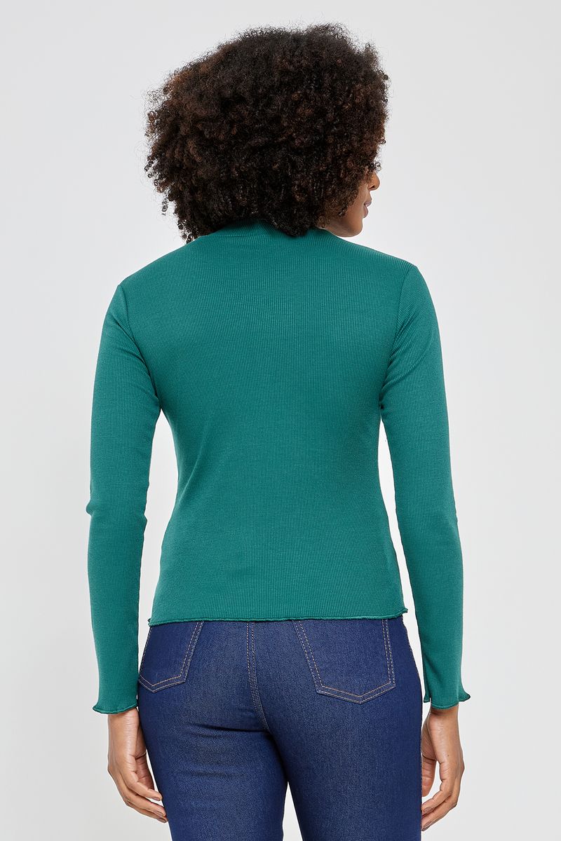 Eleve seu estilo com a Blusa Feminina Casual Gola Alta Verde Escuro Caedu. Confeccionada em ribana com poliéster, viscose e elastano, oferece conforto e caimento perfeito. Ideal para um visual moderno e versátil, esta roupa é a escolha certa para quem busca moda e praticidade.