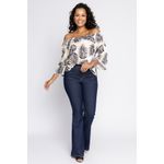 Blusa feminina com modelagem ciganinha. A peça possui estampa, decote ombro a ombro e manga 7/8.