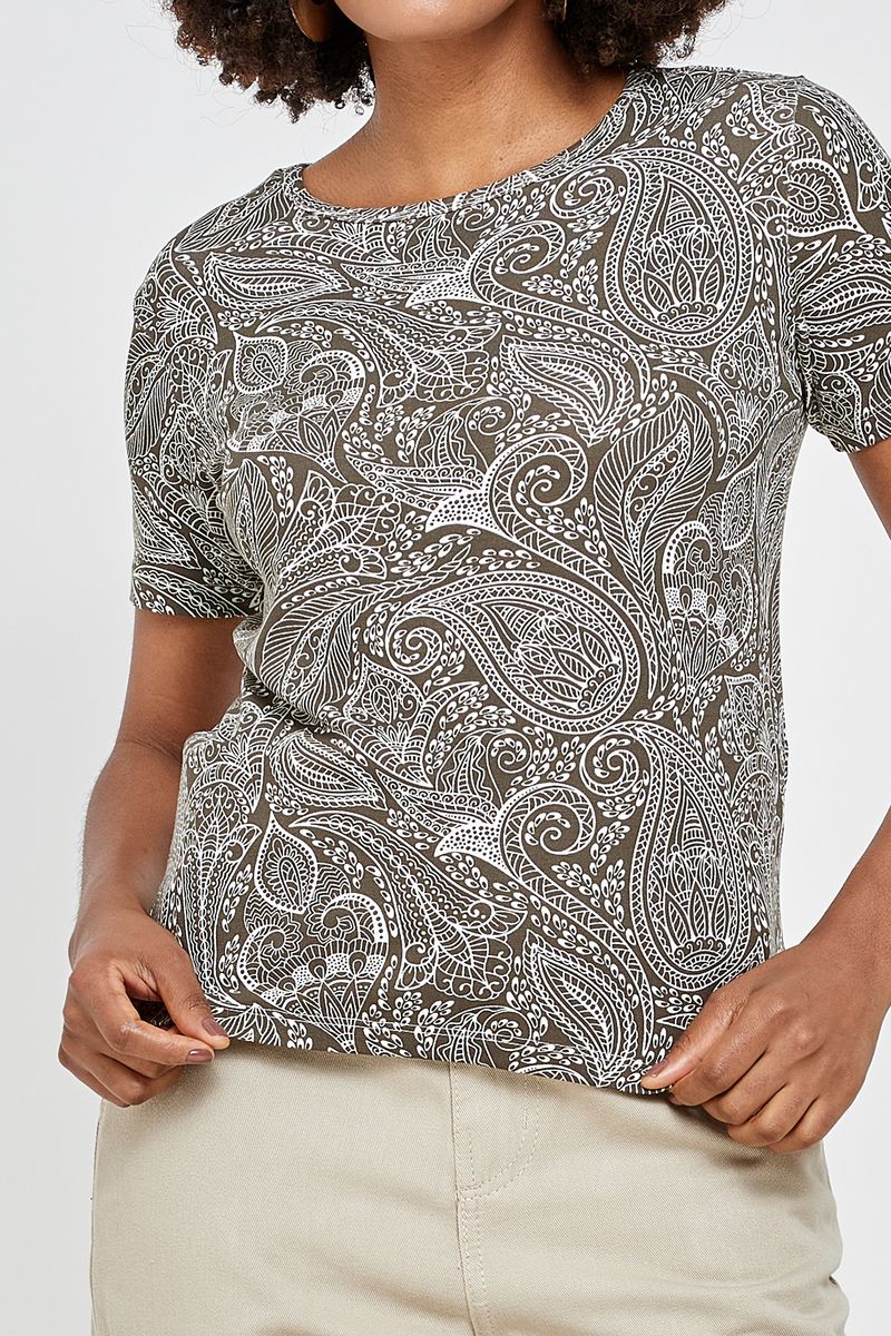 Eleve seu estilo com a Blusa Feminina Estampada Caedu. Confeccionada em viscose e elastano, oferece caimento perfeito e conforto para o dia a dia. Seu design full estampado e manga curta traz um toque de moda e versatilidade, ideal para criar looks incríveis. Uma peça essencial para quem busca roupa com charme e praticidade.