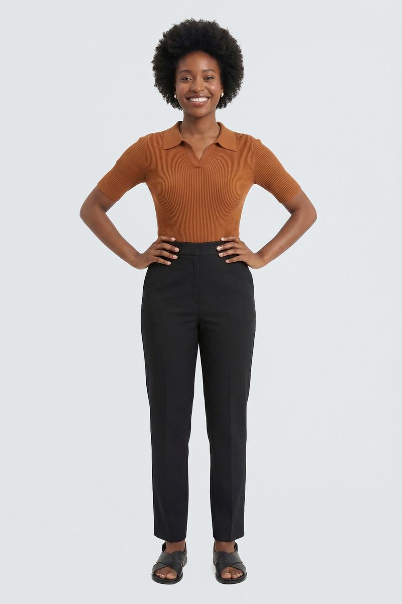 Combine o suéter caramelo com calças de alfaiataria pretas para um look sofisticado, ou jeans de cintura alta para um estilo mais despojado. Complete com sandálias de tiras para um toque elegante ou tênis brancos para conforto. Adicione acessórios discretos para realçar a beleza da peça.
