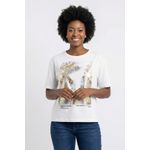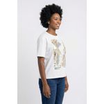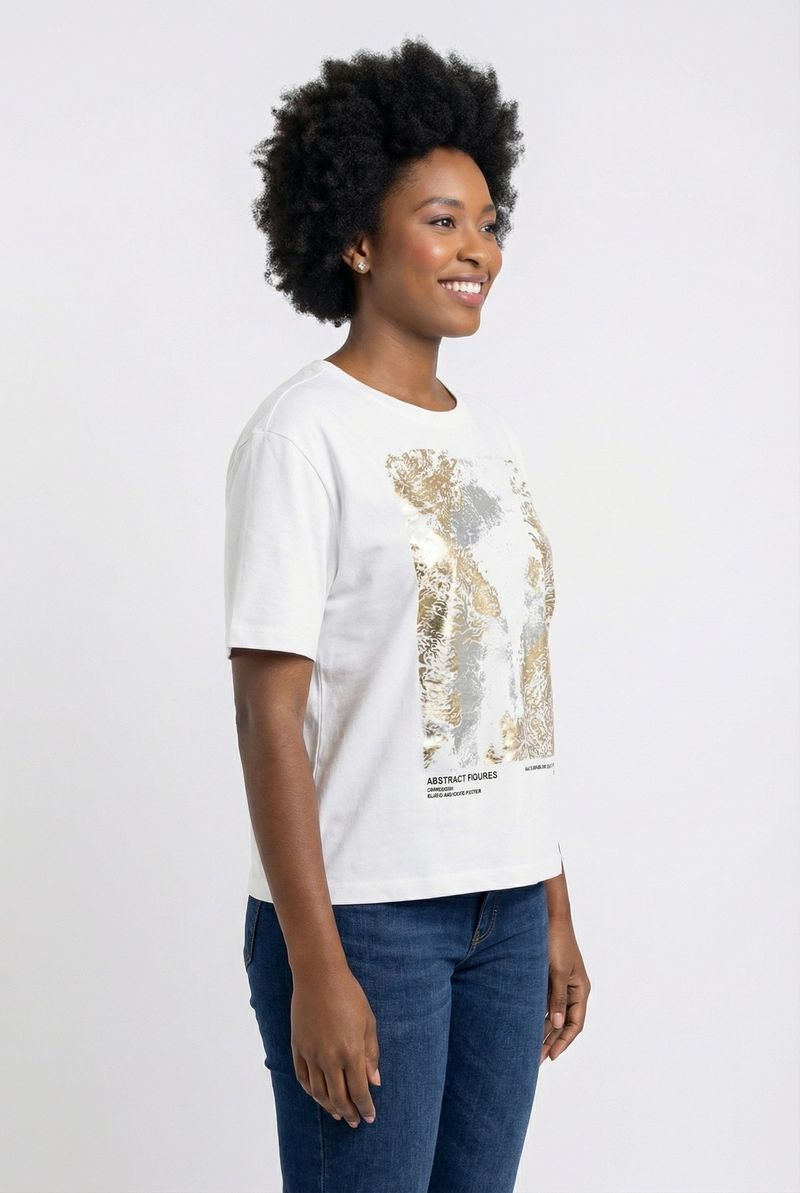 Descubra a moda e o estilo com a Blusa Feminina Caedu Off White. Esta peça versátil apresenta uma estampa abstrata em foil dourado e prata, adicionando um toque de sofisticação ao seu visual. Com decote redondo e manga curta, é a escolha perfeita para quem busca conforto e elegância no dia a dia.