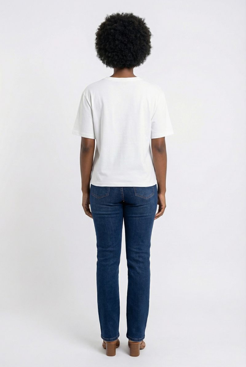 Combine sua blusa com uma calça jeans de corte reto para um visual descontraído, ou com uma saia midi para um toque mais elegante. Complete o look com sandálias de salto bloco para um estilo casual chic, ou tênis brancos para um conforto extra. Adicione acessórios discretos para realçar a estampa.