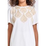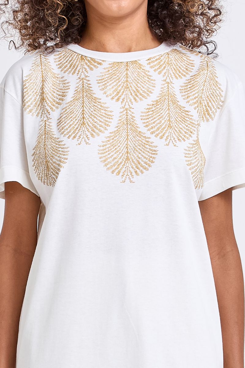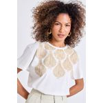 A Blusa Feminina Casual Off-White Caedu eleva seu estilo com a delicadeza da estampa dourada de folhagens. Confeccionada em meia malha, oferece conforto e um toque de sofisticação para a mulher moderna que busca roupas versáteis e elegantes.
