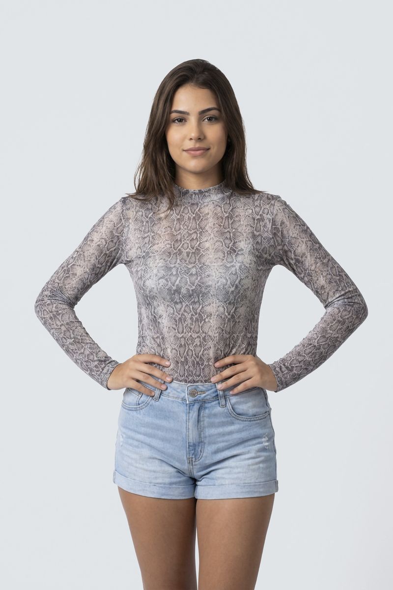 Blusa fem city 2208ca m/l tule est cobra estampado