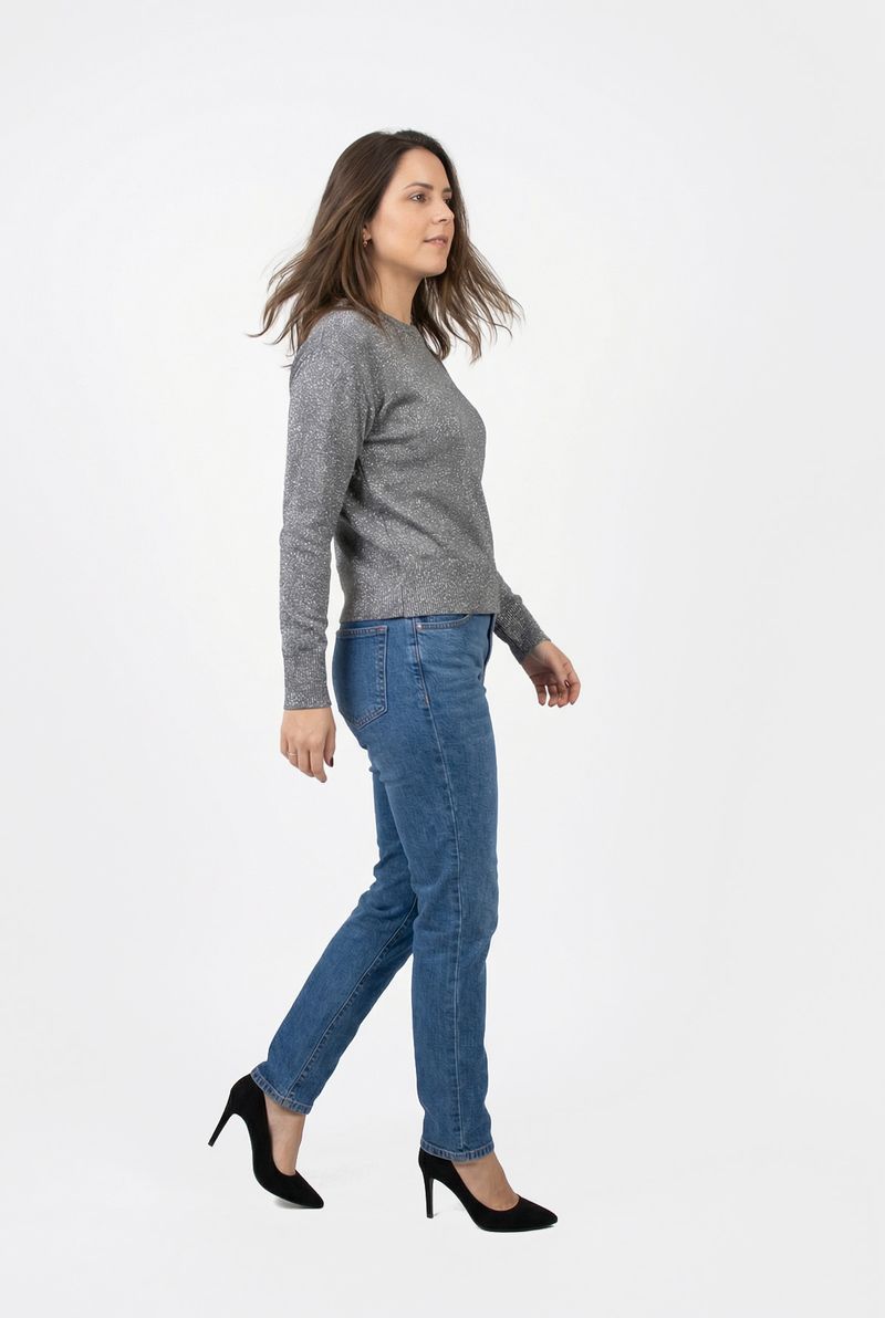 VestuárioFemininoBlusas e CamisetasBlusa fem city fcil365 m/l raglan lurex cinza escuro