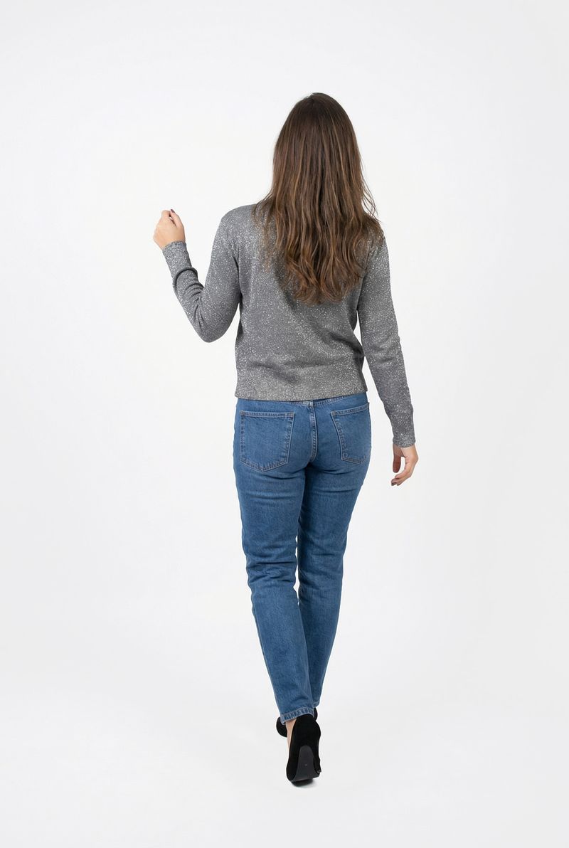 Blusa fem city fcil365 m/l raglan lurex cinza escuro