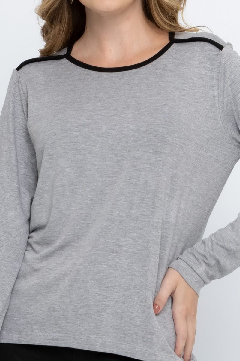 Blusa feminina da coleção City, confeccionada em tecido viscolycra. Possui decote redondo e manga longa.