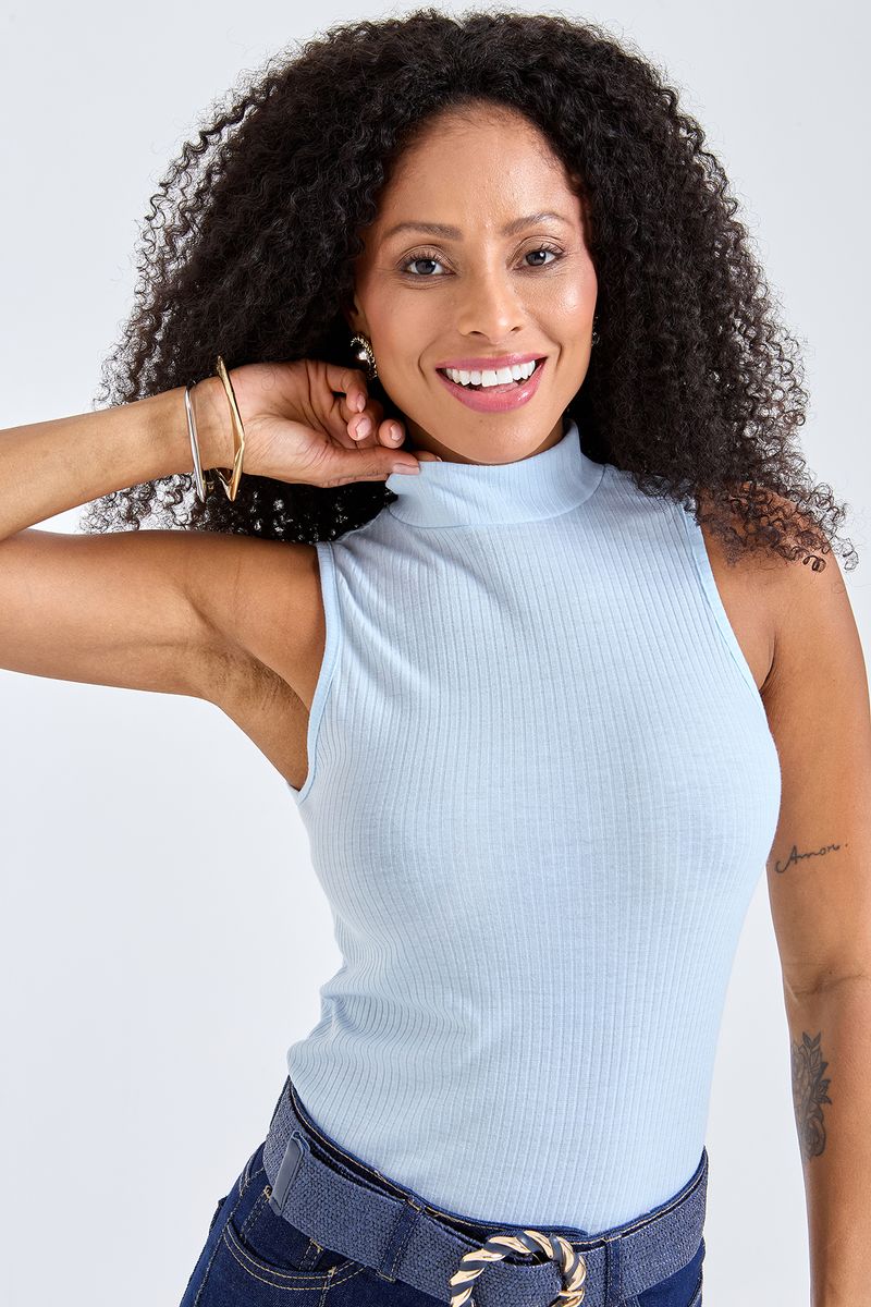 VestuárioFemininoBlusas e CamisetasBlusa fem city s/m ribana gola alta azul azul claro