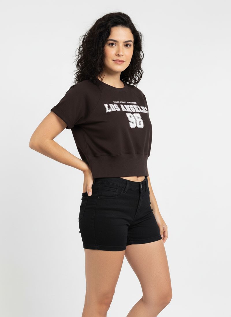 A Blusa Cropped Feminina Caedu Los Angeles 96 em moletom marrom escuro é a peça ideal para quem busca estilo e conforto. Com design moderno de manga curta e estampa exclusiva, ela eleva qualquer look casual. Perfeita para as roupas do dia a dia, esta blusa da Caedu é um item essencial de moda.