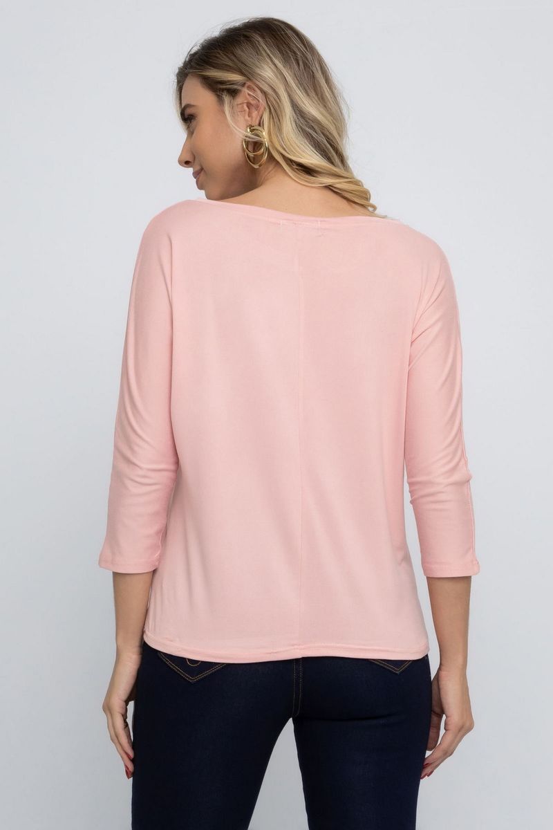 Blusa feminina casual. Possui gola redonda e manga 7/8.