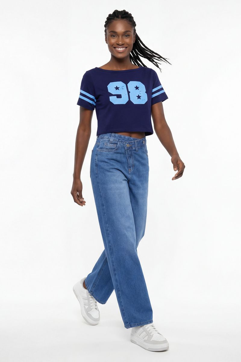 VestuárioFemininoBlusas e CamisetasBlusa fem esp m/c crop box estampado azul escuro