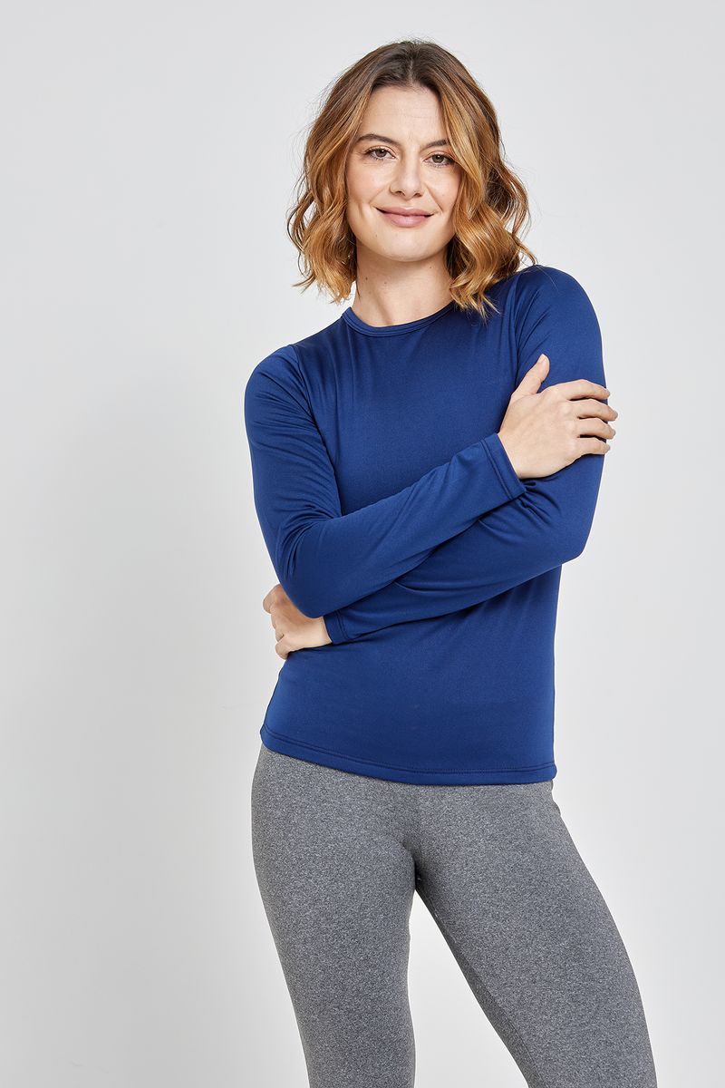 A Blusa Feminina Térmica Caedu em SUPPLEX 100% poliéster é a roupa ideal para seu conforto. Com malha térmica e manga longa azul escuro, oferece versatilidade e estilo para seus looks. Uma peça essencial de moda Caedu.