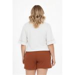 Combine sua blusa off white com um shorts de cintura alta marrom para um look despojado e moderno. Para um toque de elegância, use com calças jeans de lavagem clara ou saias fluidas. Complete o visual com sandálias de salto médio caramelo e acessórios dourados, criando um estilo único e inspirador.