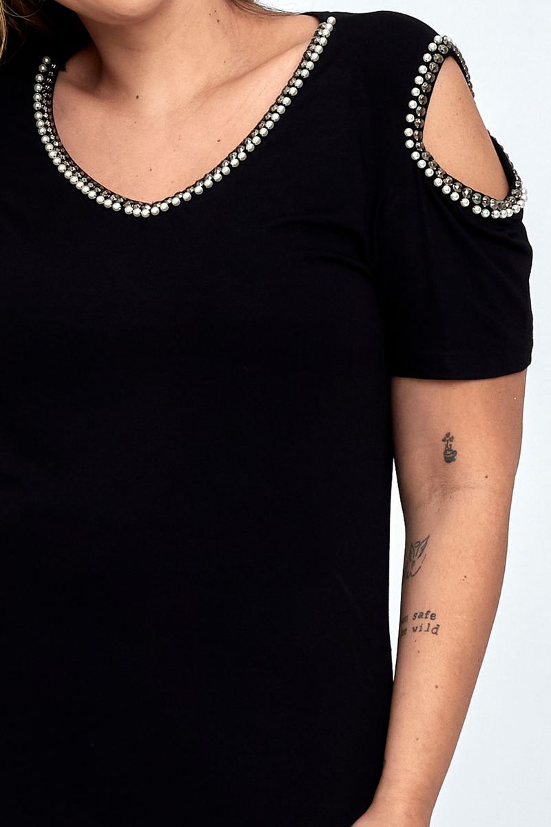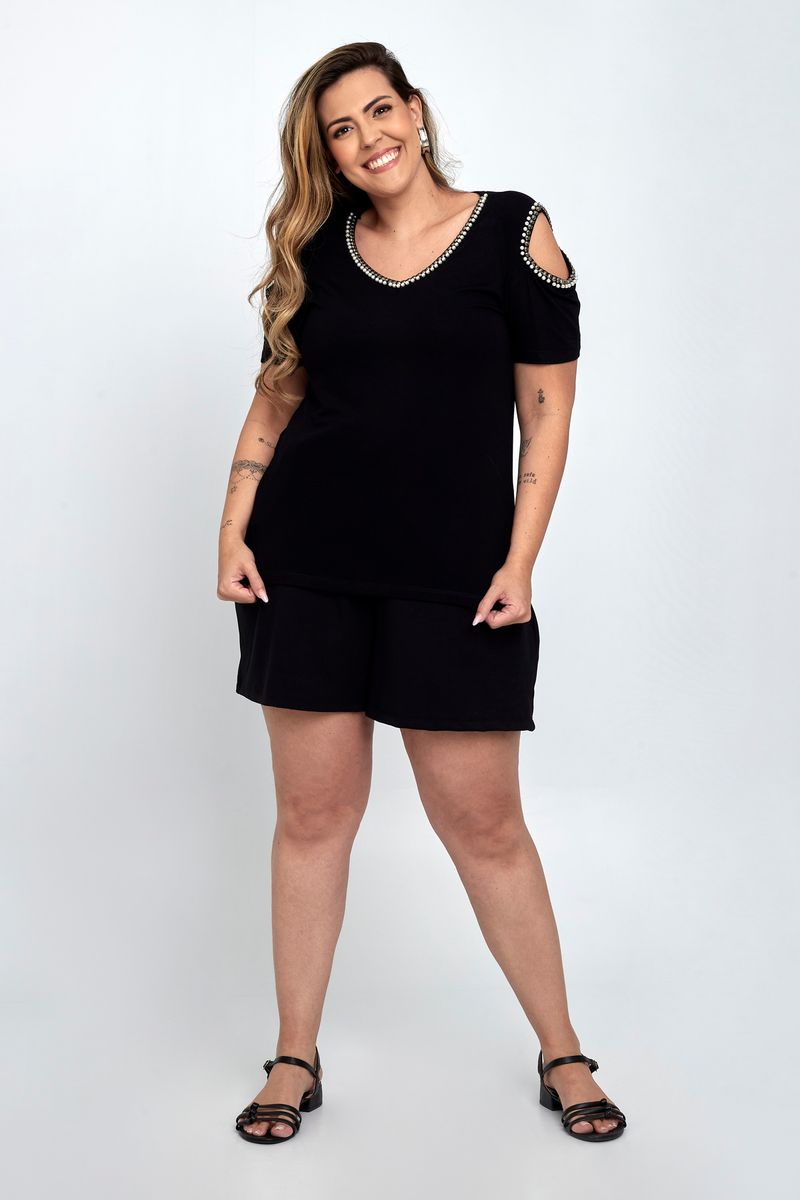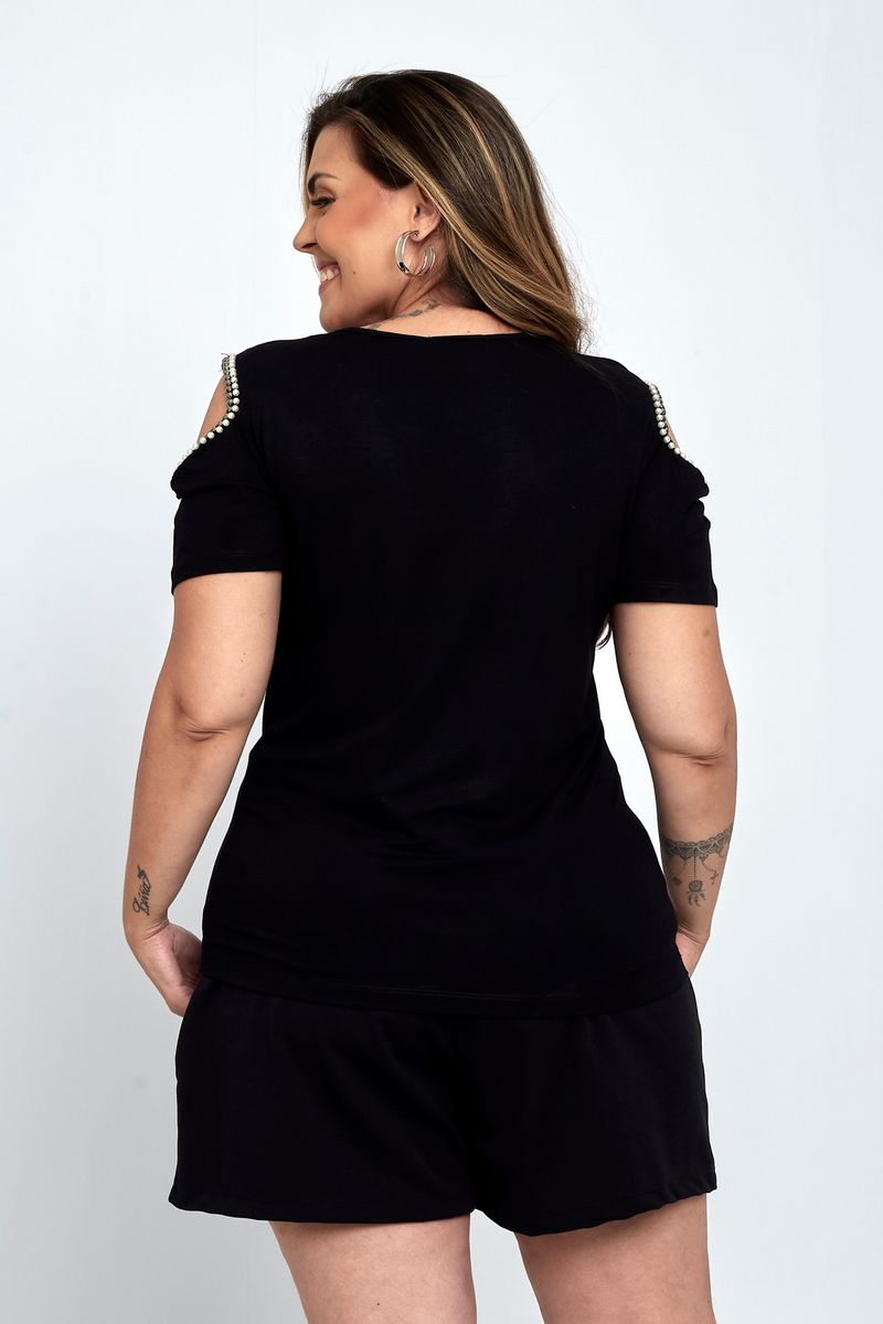 VestuárioFemininoNovidadesBlusas e CamisetasBLUSA FEM FPM CAS OPEN SHOULDER C/ BORD - PRETO