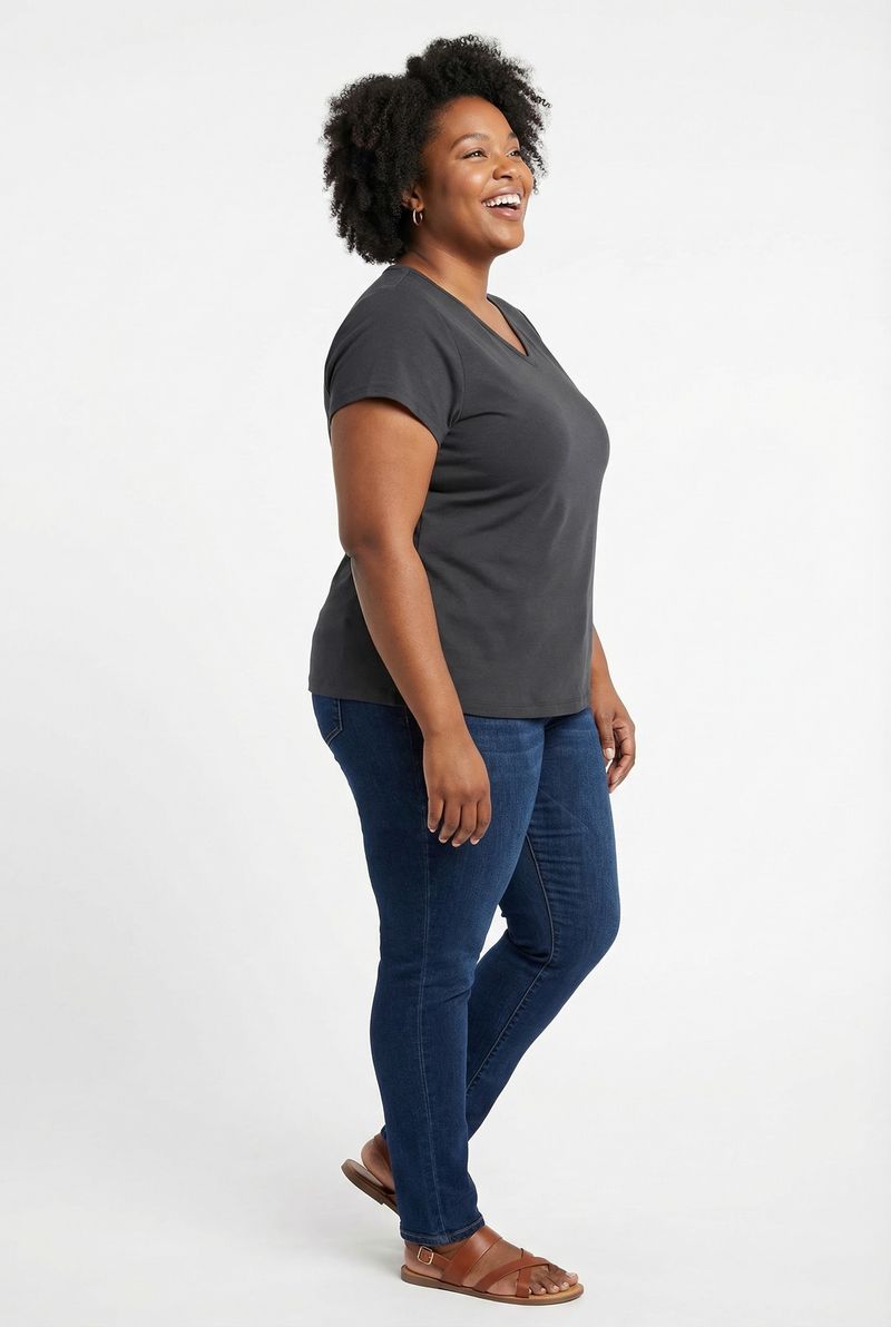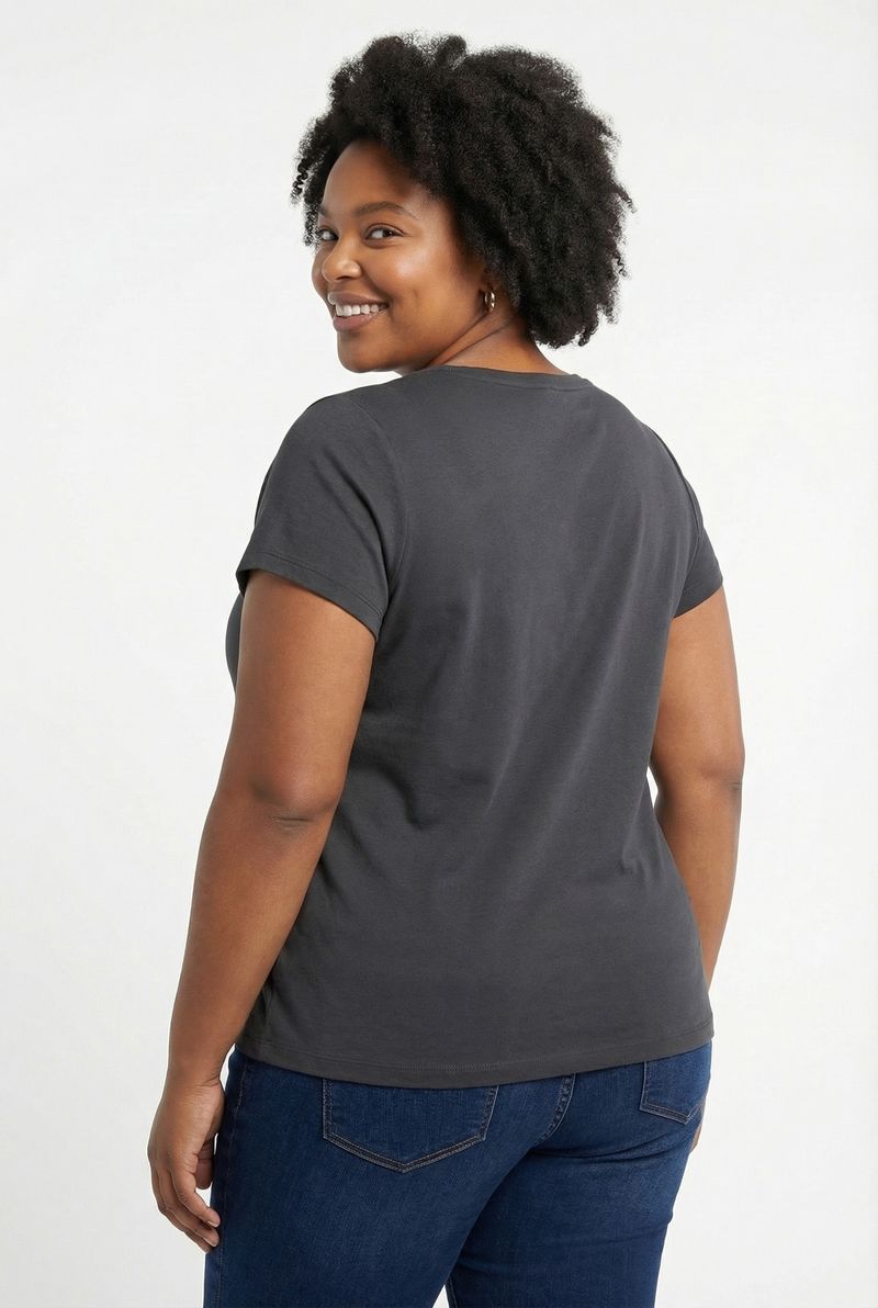 A Blusa Feminina Gola V Algodão Preta Manga Curta Essencial Caedu oferece conforto inigualável e versatilidade para seu guarda-roupa. Feita em algodão puro, com gola V e manga curta, é a peça ideal para looks casuais e elegantes, garantindo um toque de moda e bem-estar.