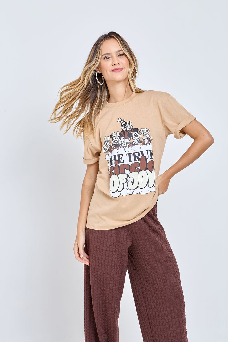 A Camiseta Feminina Mickey Friends da Caedu, em 100% algodão de meia malha, oferece conforto e estilo. A estampa 'The True Circle of Joy' com Mickey e amigos adiciona um toque de moda e alegria ao seu visual. Uma roupa perfeita para fãs da Disney.