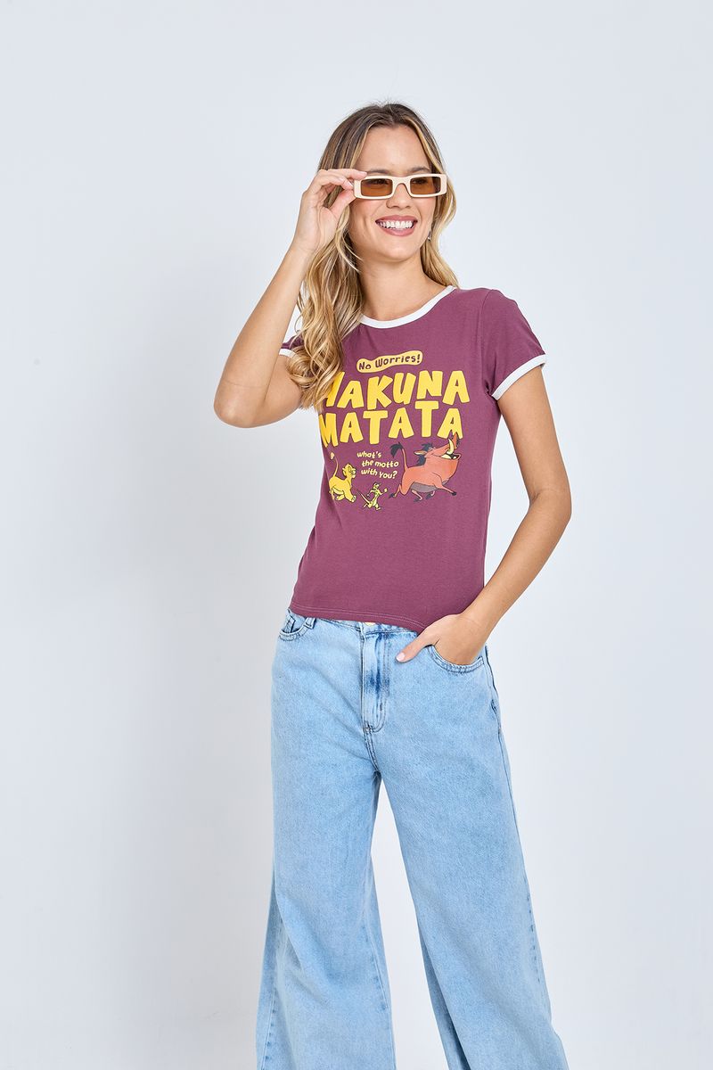 Celebre a alegria de Hakuna Matata com a blusa feminina da Caedu. Confeccionada em 100% algodão de meia malha, esta peça bordô oferece conforto e estilo. Apresenta uma estampa vibrante de O Rei Leão, perfeita para quem busca uma roupa inspiradora e cheia de personalidade.