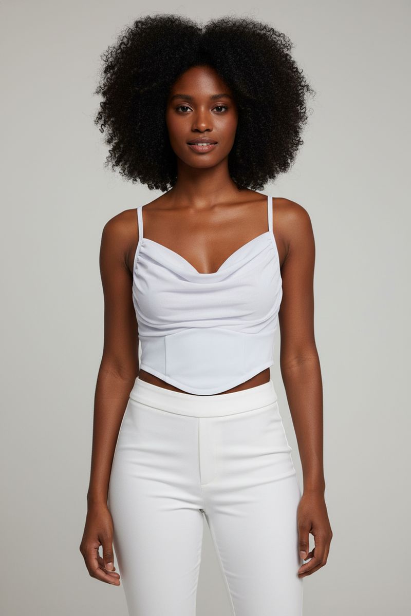 Desperte seu estilo com a Blusa Feminina Caedu. Seu design estilo corset e decote drapeado valoriza a silhueta, oferecendo um toque moderno e sofisticado. Perfeita para criar looks inspiradores e cheios de personalidade.