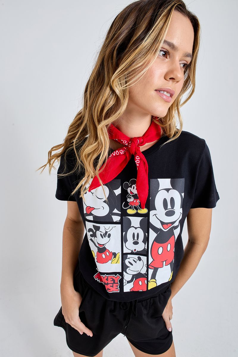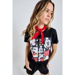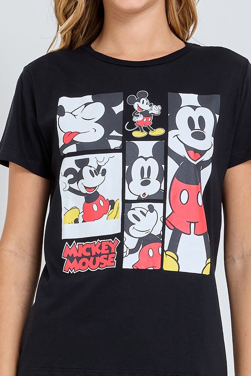 A Camiseta Feminina Mickey Mouse Estampa Painéis Licenciada Preta Caedu é moda e conforto. Em 100% algodão e meia malha, oferece toque suave. A estampa de painéis do Mickey Mouse traz diversão e estilo para suas roupas.