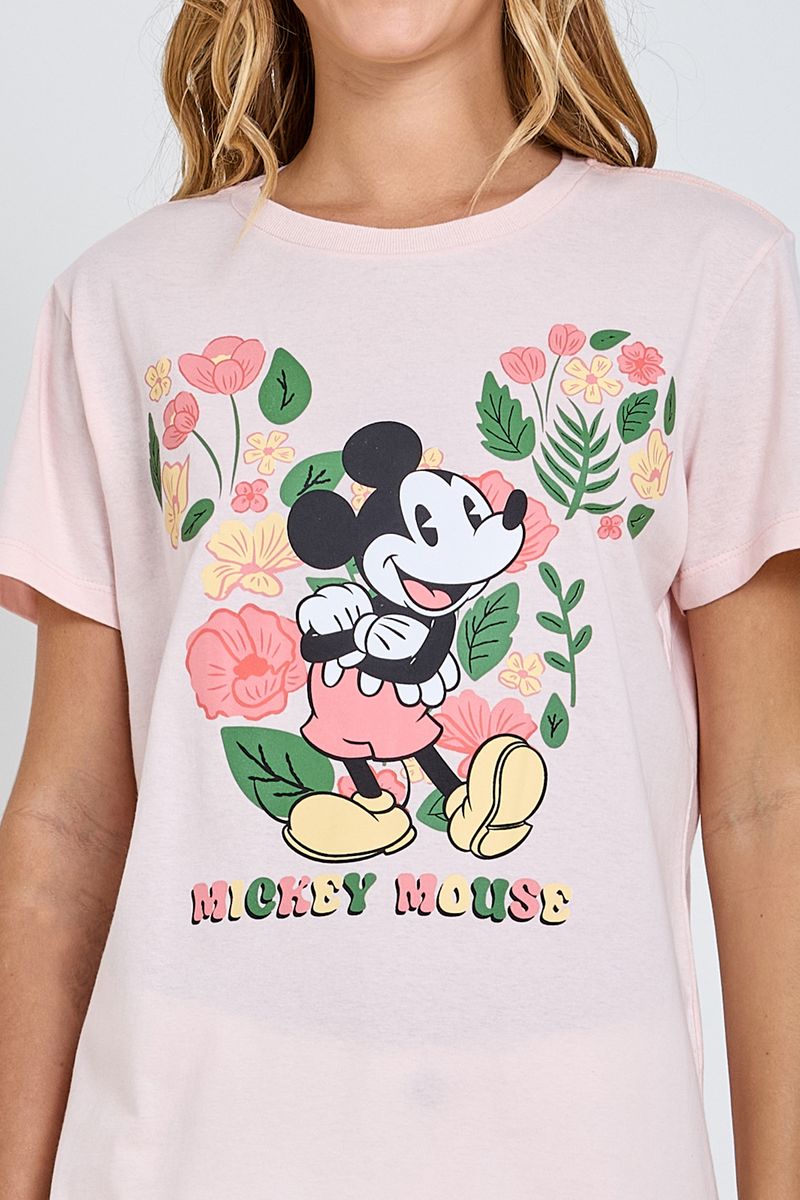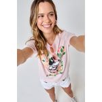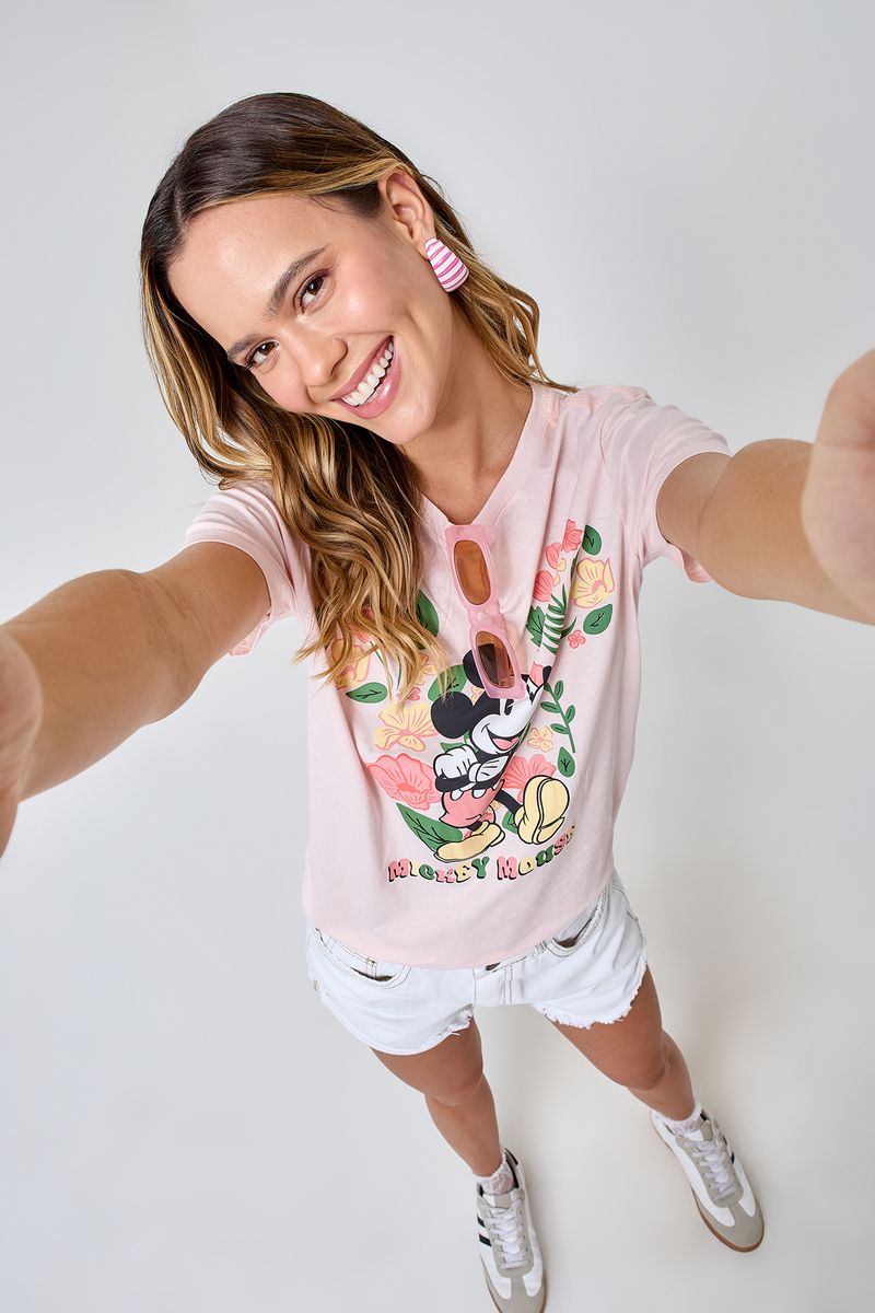 Camiseta Feminina Mickey Mouse Floral Rosa Claro Caedu, em