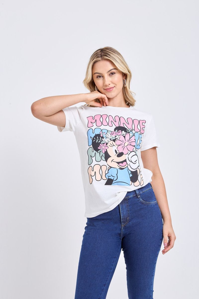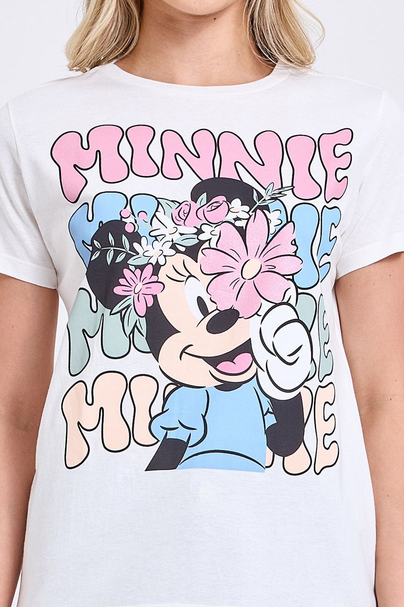Celebre a moda com a Blusa Feminina Minnie 'Flower Power' Floral Off White Caedu. Confeccionada em 100% algodão e meia malha, oferece conforto e leveza. Seu design exclusivo com a Minnie Mouse e estampa floral vibrante traz um toque de alegria e estilo para suas roupas.