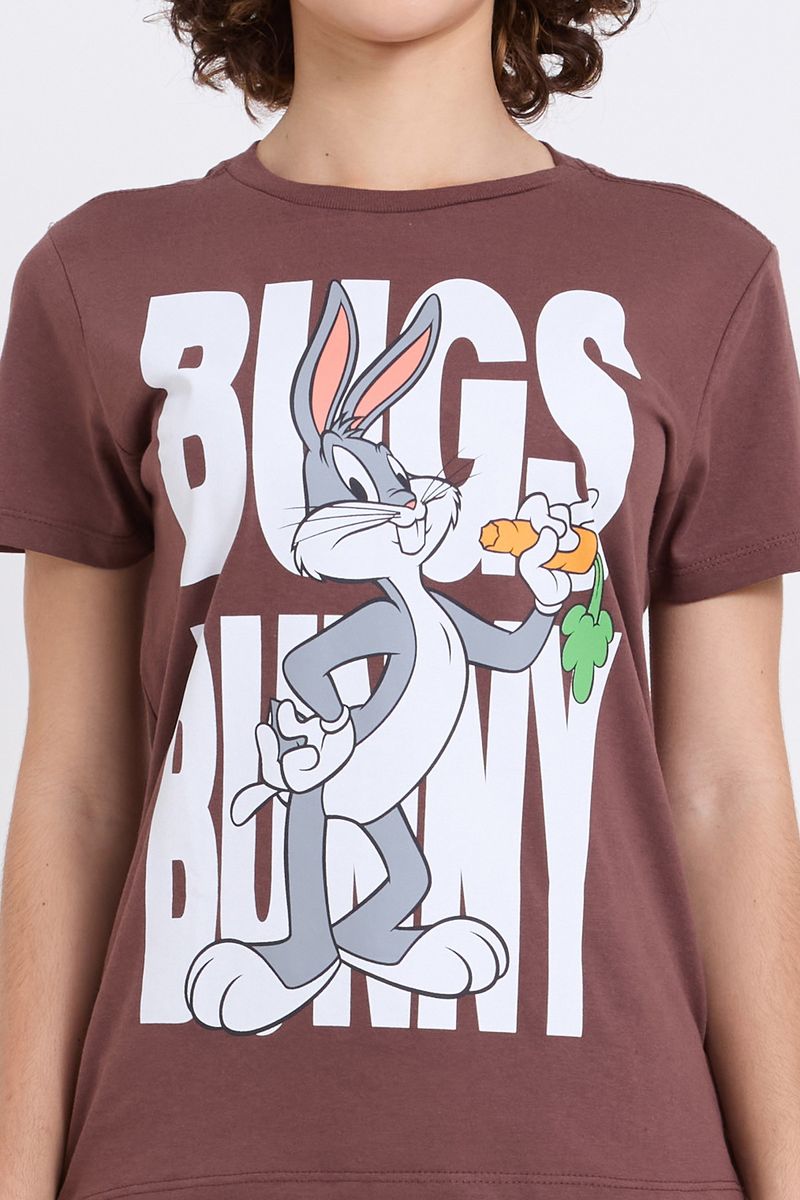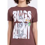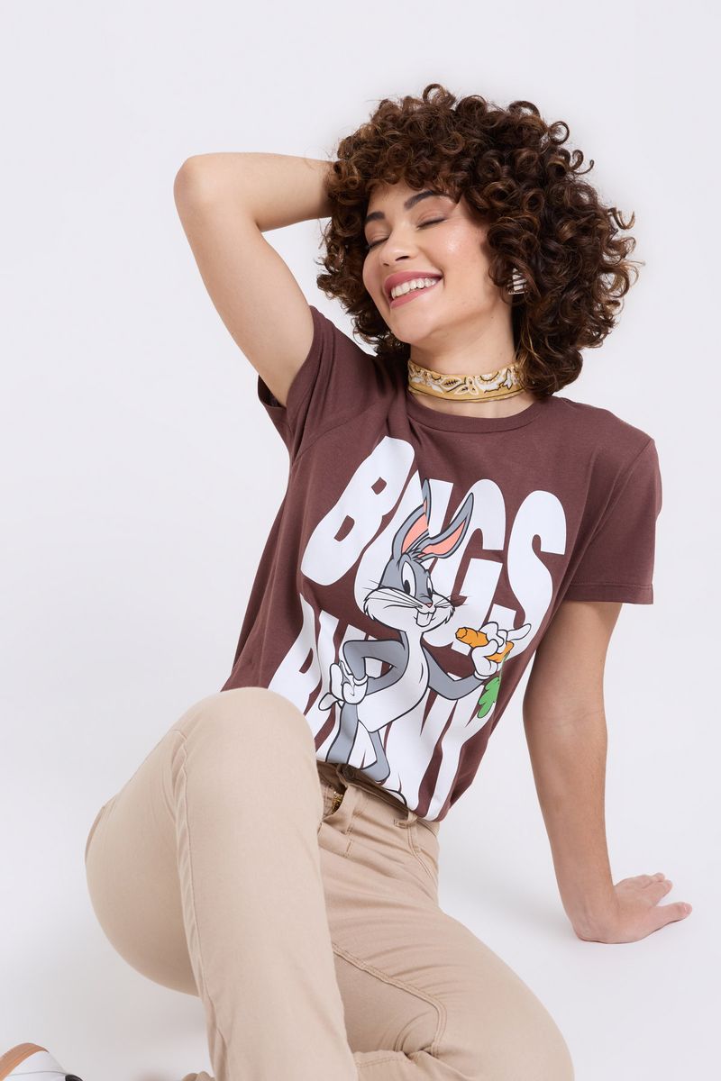 Sinta a magia dos Looney Tunes com a Blusa Feminina Caedu Pernalonga! Confeccionada em 100% algodão, esta peça em meia malha oferece conforto e um toque suave. Seu design marrom chocolate e a estampa vibrante do Pernalonga trazem um charme único para seu dia a dia, ideal para quem busca roupas com personalidade e moda divertida.