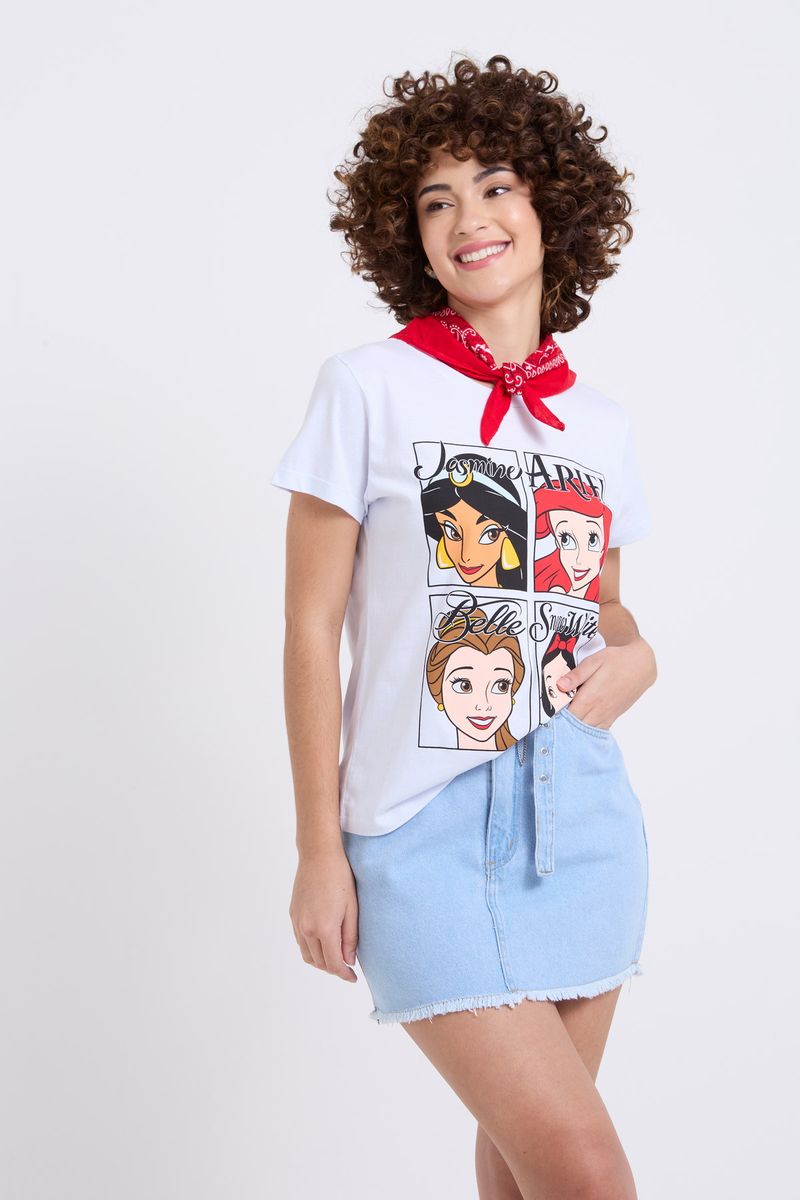 Blusa fem lic promo princesas branco branco