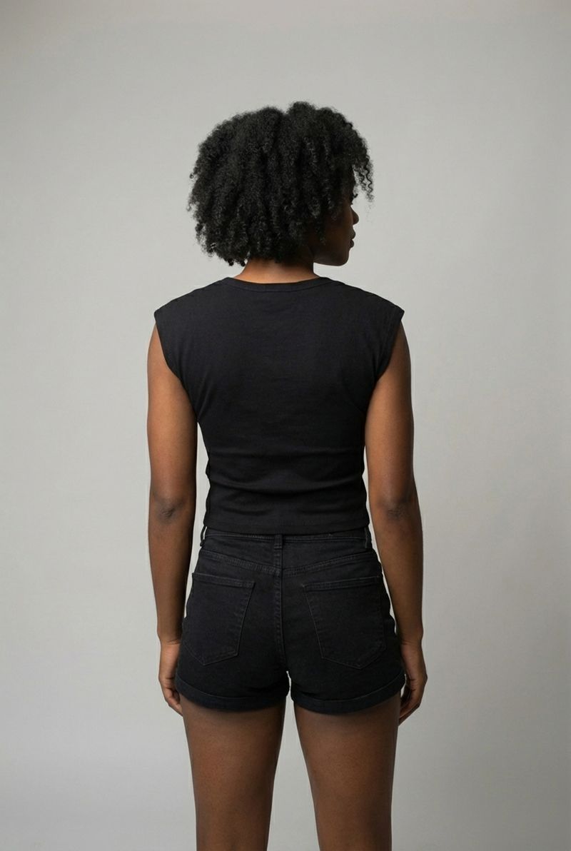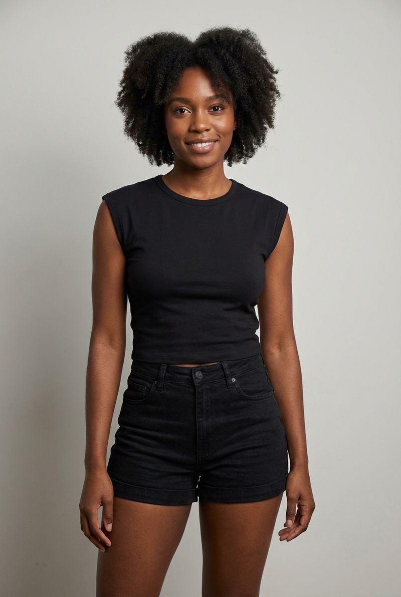 Eleve seu estilo com a Blusa Feminina Muscle Tee Preta Essencial Gola Redonda Caedu. Uma peça chave para o guarda-roupa feminino, esta roupa combina conforto e moda, com seu design moderno de mangas 'cap sleeve' e comprimento cropped. Perfeita para criar looks versáteis e cheios de personalidade, ideal para quem busca roupas que se destacam.