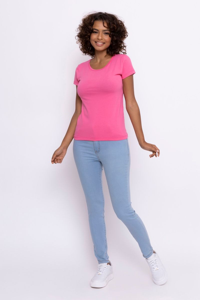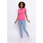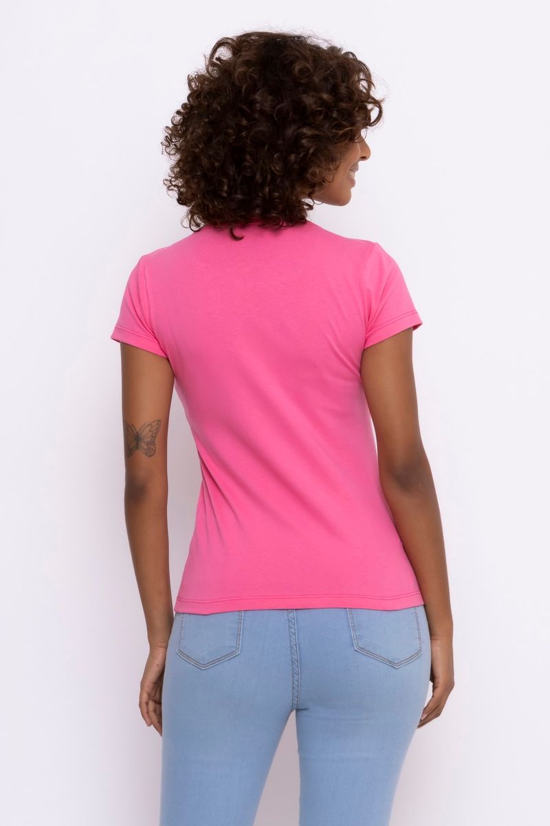 Blusa feminina confeccionada em cotton. A peça possui decote redondo e manga curta.