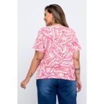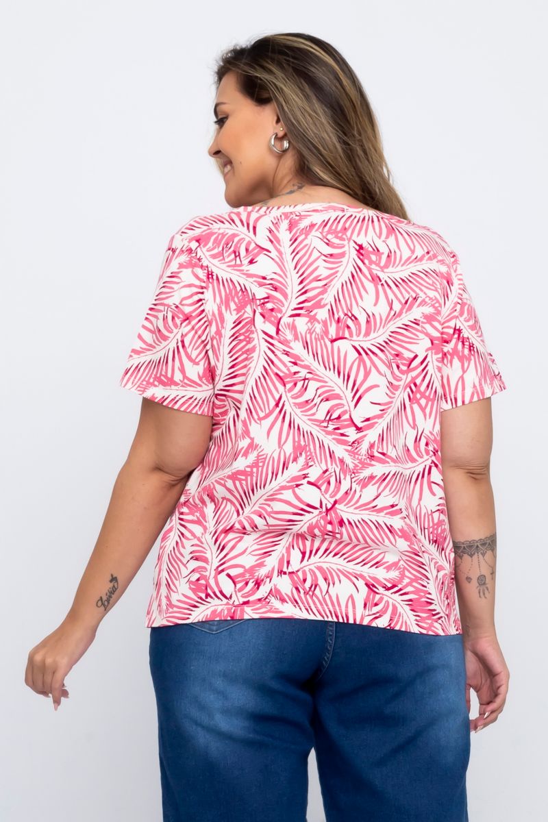 Blusa Casual Feminina em Viscolycra com Estampa Folhas Feita Pra Mim Branca e Rosa