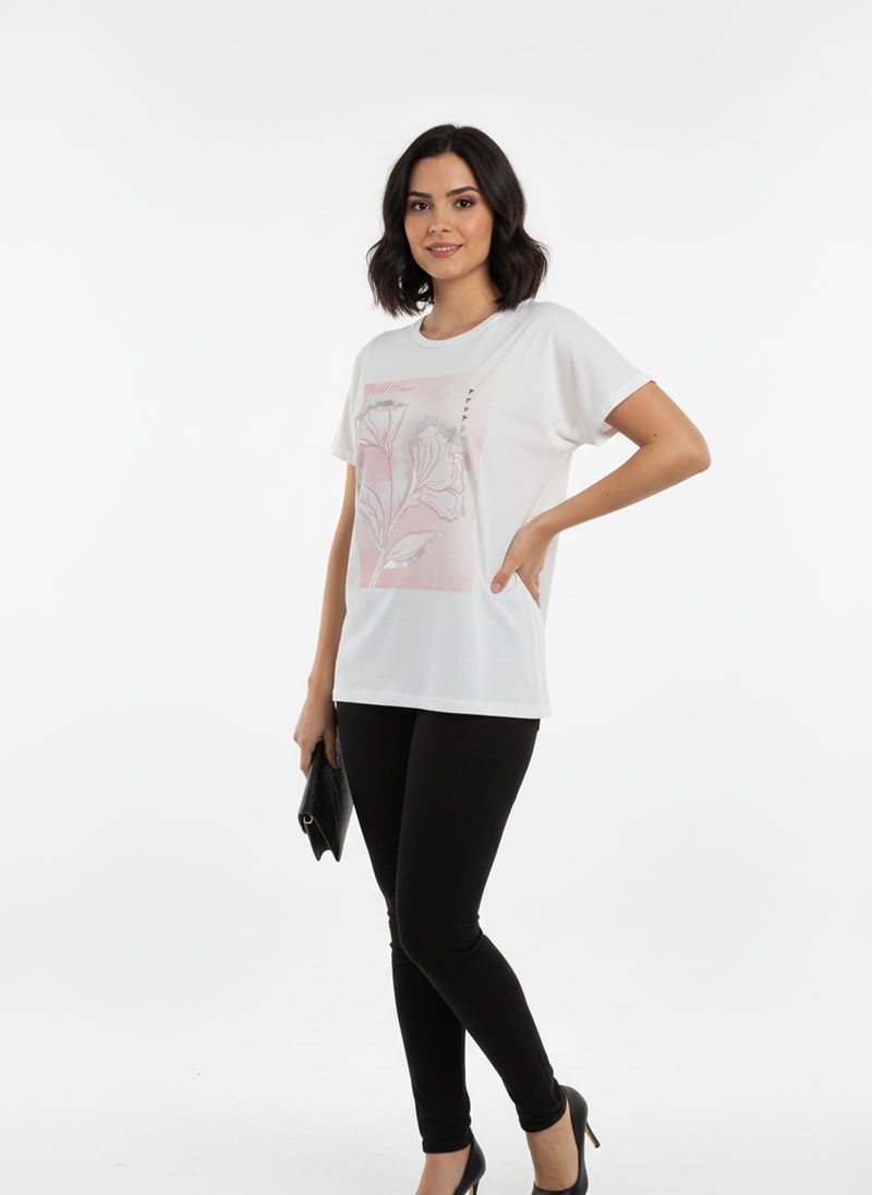 VestuárioFemininoBlusas e CamisetasBlusa fem promo fcil332 m/c est loc off off white