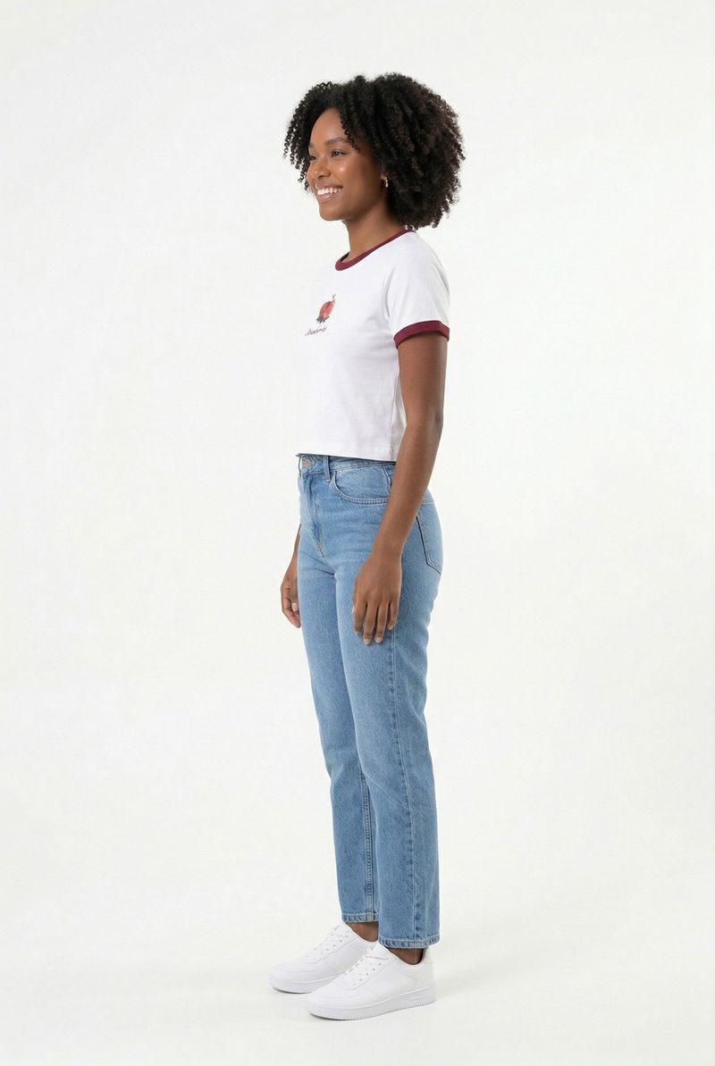 Para um visual moderno, combine a camiseta cropped com calça jeans de cintura alta. Para algo mais casual, shorts jeans ou saias midi são ótimas opções. Complete com tênis brancos ou sandálias rasteirinhas. Em dias mais frescos, uma jaqueta jeans sobreposta adiciona estilo e versatilidade ao seu look.
